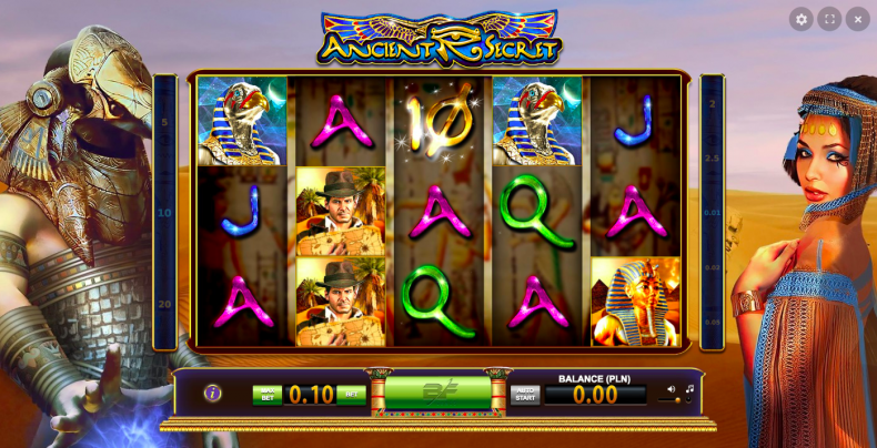 Ancient Secret™ video slot have 5 reels, 3 rows and 20 winning lines. 3 or more Scatter symbols trigger Free Spins Game. The video slot game features also Wild and Stacked symbols, and Gamble Mode.