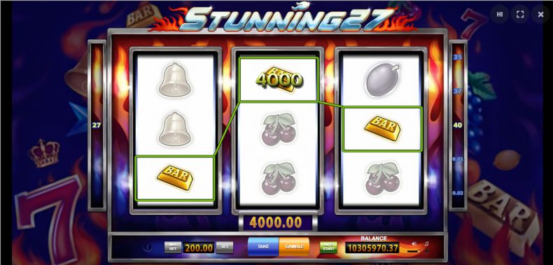 The number 27 is not accidental in this slot game. In Stunning 27™ video slot are 27 ways to win, and the number of winning multiplier is even greater. The fruit symbols are Stacked, and when you see 9 identical fruits on reels your win will be tripled. If you are looking for more Stunning wins use Gamble Mode.