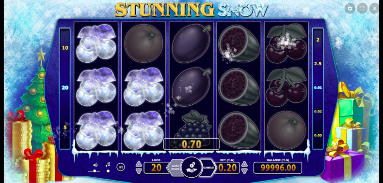 Stunning Snow™ video slot have 5 reels, 3 rows and 20 winning lines. Game features Scatter symbol, Gamble Mode which can double winnings and AutoStart.